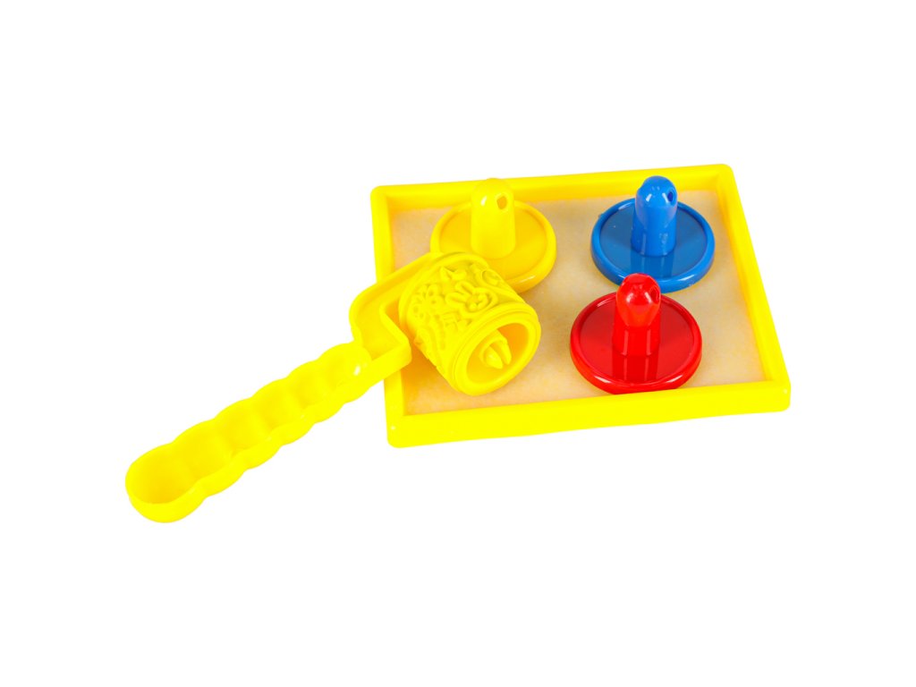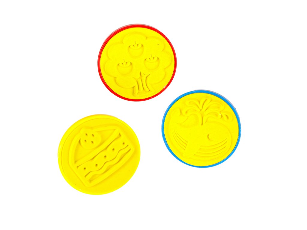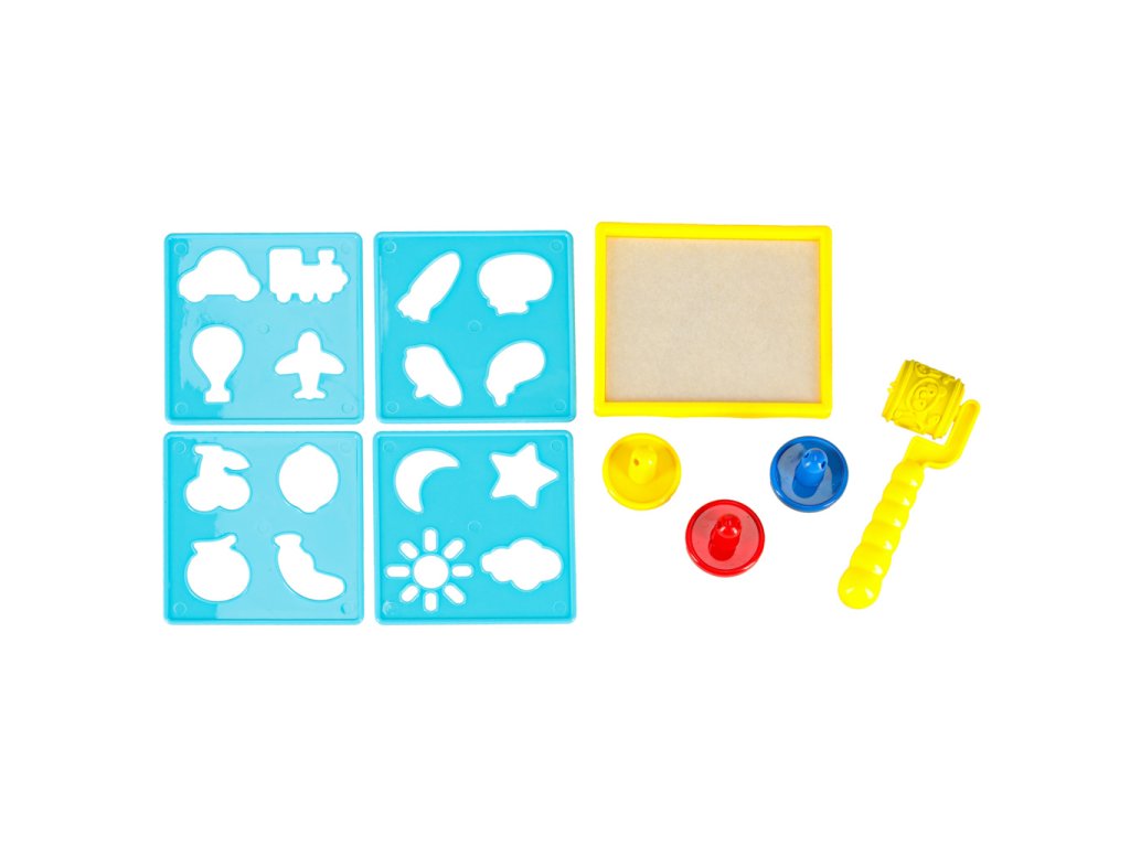 - 1x posudica za umakanje pečata- 1x valjak s slikama- 4x šablone s različitim oblicima