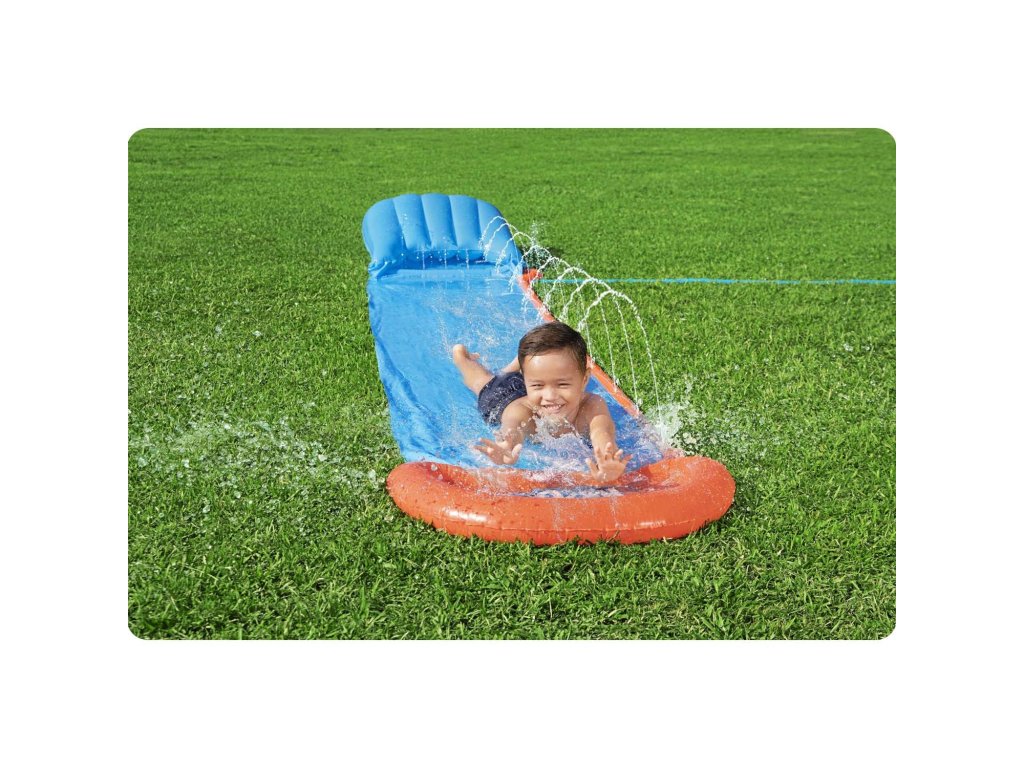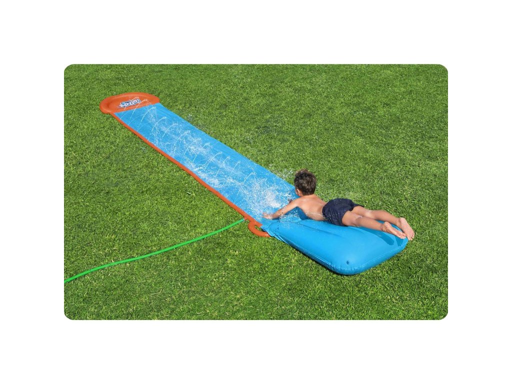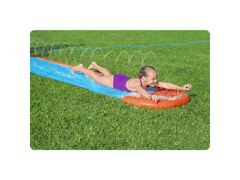 Tobogan ima stazu i vodene prskalice koje osiguravaju pravilan kliz tijekom igre.
