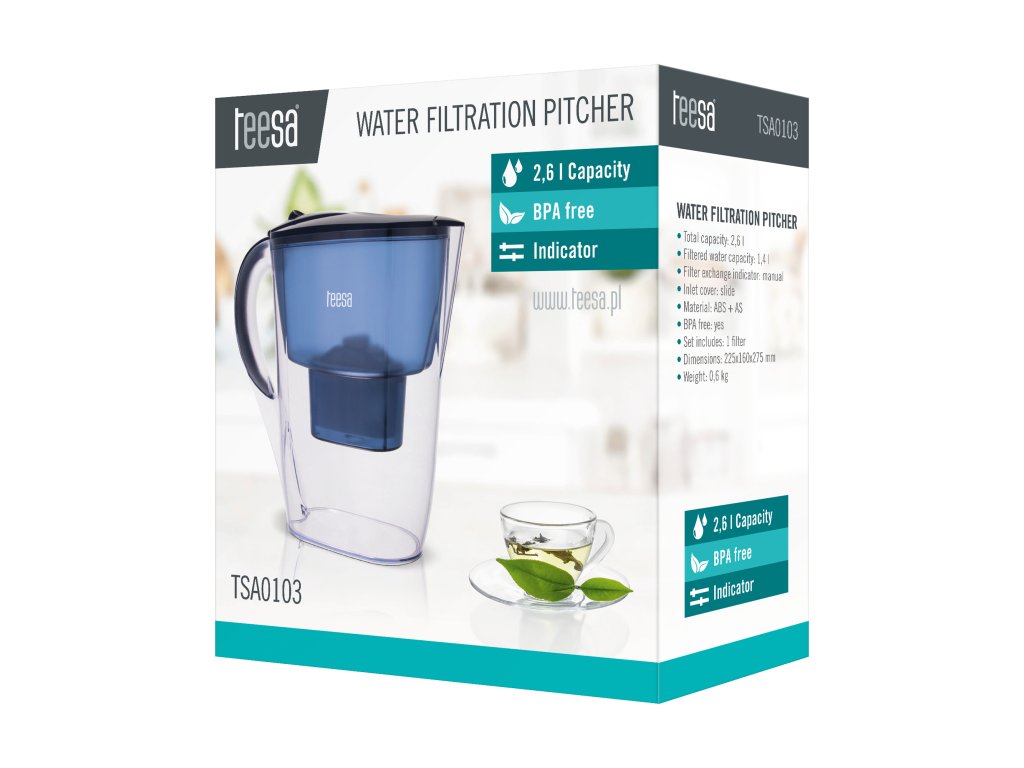 Voda iz slavine sve se više razlikuje od flaširane vode, kako u pogledu okusa, tako i sadržaja minerala. Stoga brinite o svom budžetu i ekologiji i uložite u vrč s filtrom koji će ukloniti sve nečistoće iz vaše vode i učiniti je idealnom za piće. Vrč s filtrom Teesa je proizvod koji ne biste smjeli propustiti u svojoj kuhinji. Njegovim korištenjem uštedjet ćete ne samo novac, nego i vrijeme. Ne morate svaki dan trčati u trgovinu i kupovati teške boce koje zauzimaju puno mjesta. Dovoljno je napuniti vrč vodom iz slavine, a zamjenjivi filter brzo će je očistiti od kamenca, klora i drugih štetnih tvari. Pružit će vam 1,4 litara vode koju možete piti bez potrebe da je prvo prokuhate. Za udobno korištenje tu je klizni poklopac koji sprječava prolijevanje vode. Uz to, ručni indikator podsjetit će vas kada je vrijeme za zamjenu filtera. Ukupni kapacitet: 2,6 l