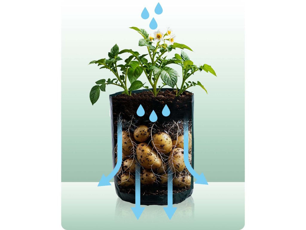 Vreća ima drenažne otvore koji odvode višak vode i osiguravaju pristup zraka korijenju.