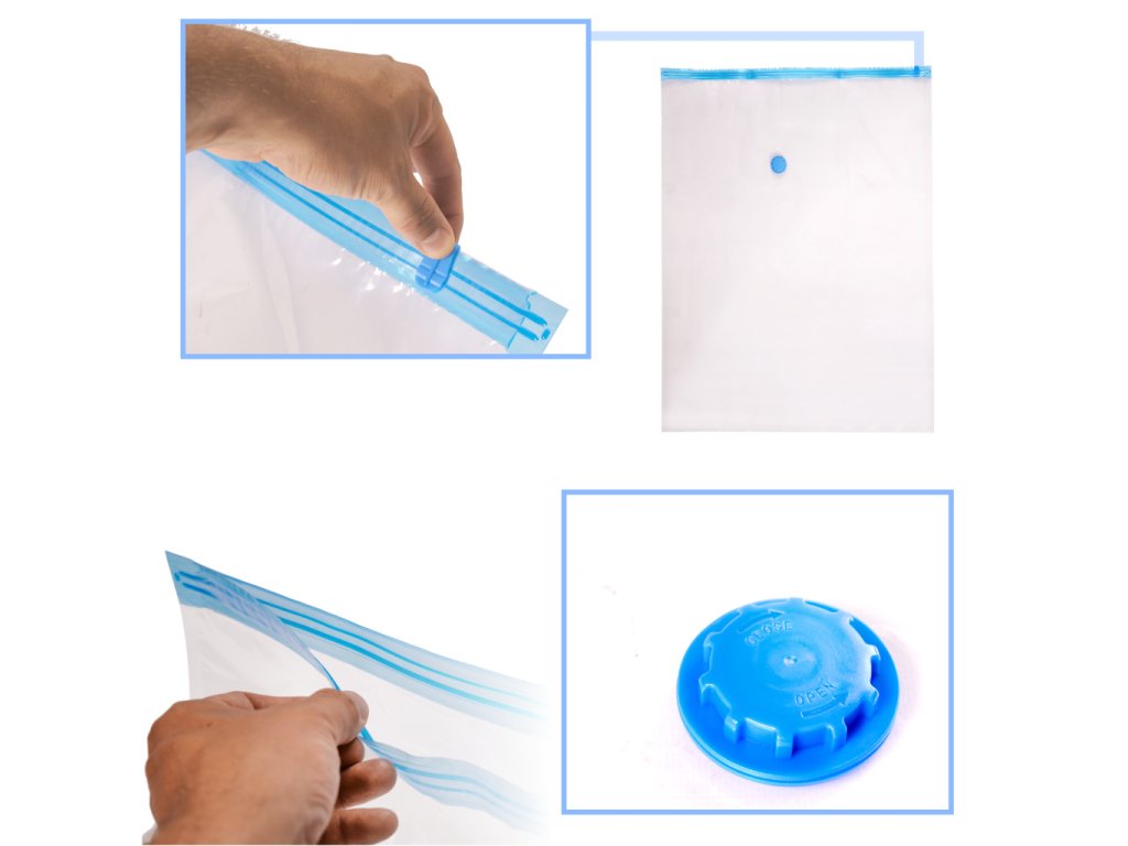 Zračno nepropusni patentni zatvarači osiguravaju da se vakuum u vrećama dugotrajno održava. A to znači da su vaše stvari sigurne i tijekom dugotrajnog skladištenja!