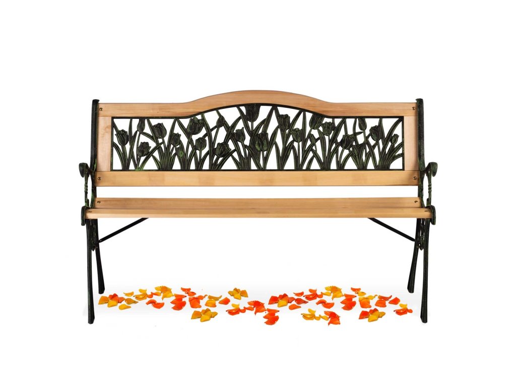 Stilska klupa koja je idealna za vaš vrt, terasu ili terasu. Elegantan dizajn privlači pažnju, a cvjetna dekoracija – proljetni tulipani – daje joj jedinstveni karakter. Udobno sjedalo jamči vam udoban odmor na svježem zraku.