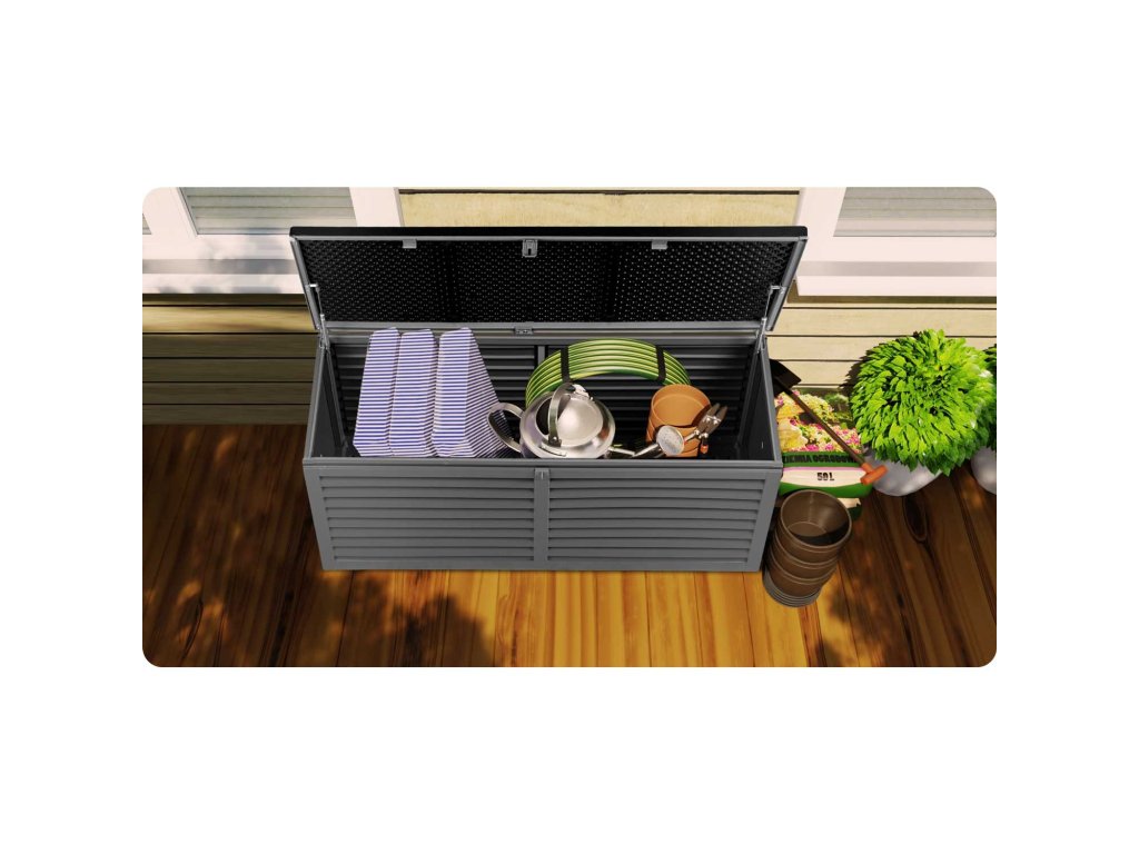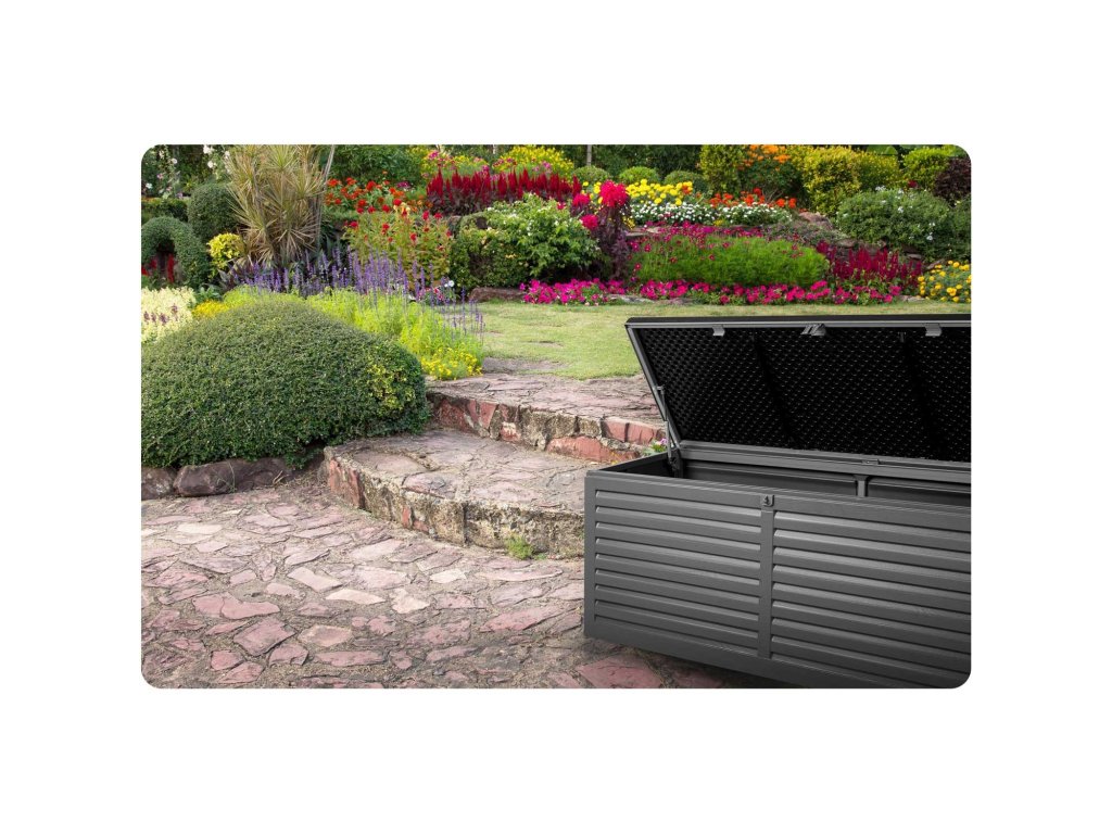 Prostrani vrtni okvir olakšava skladištenje svakodnevnih potreba (jastuka, madraca, presvlaka, igračaka, alata) i mnogih drugih stvari u vrtu, na balkonu i u cijeloj kući.