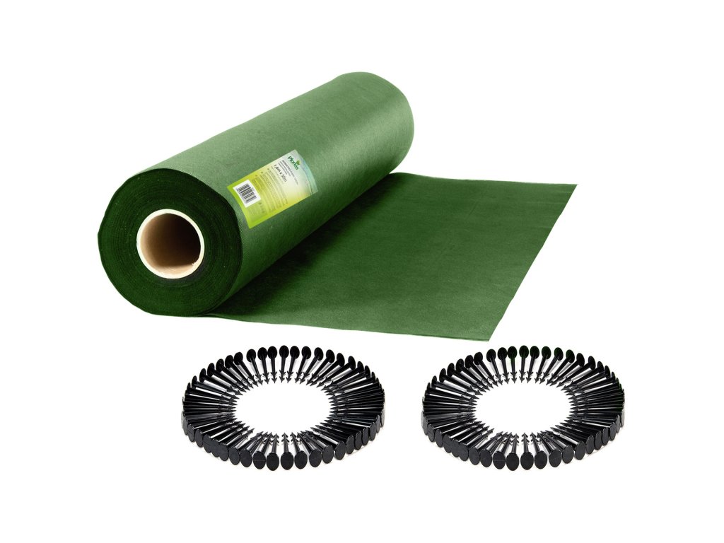 Vrtna tkanina 1,6 m x 50 m 90 g/m2 + 100 klinova Plonos - zelena