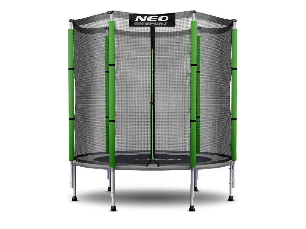 Trampolina Neo-Sport je siguran i stabilan sportski uređaj promjera 140 cm. Zaštitna mreža je opremljena čvrstim patentnim zatvaračem. Stubovi konstrukcije obloženi su gustom pjenom, dok su opruge koje pričvršćuju podlogu prekrivene posebnim zaštitnim ovratnikom s pjenom unutra. Takva rješenja jamče sigurno korištenje trampoline i zaštitu od mehaničkih ozljeda.