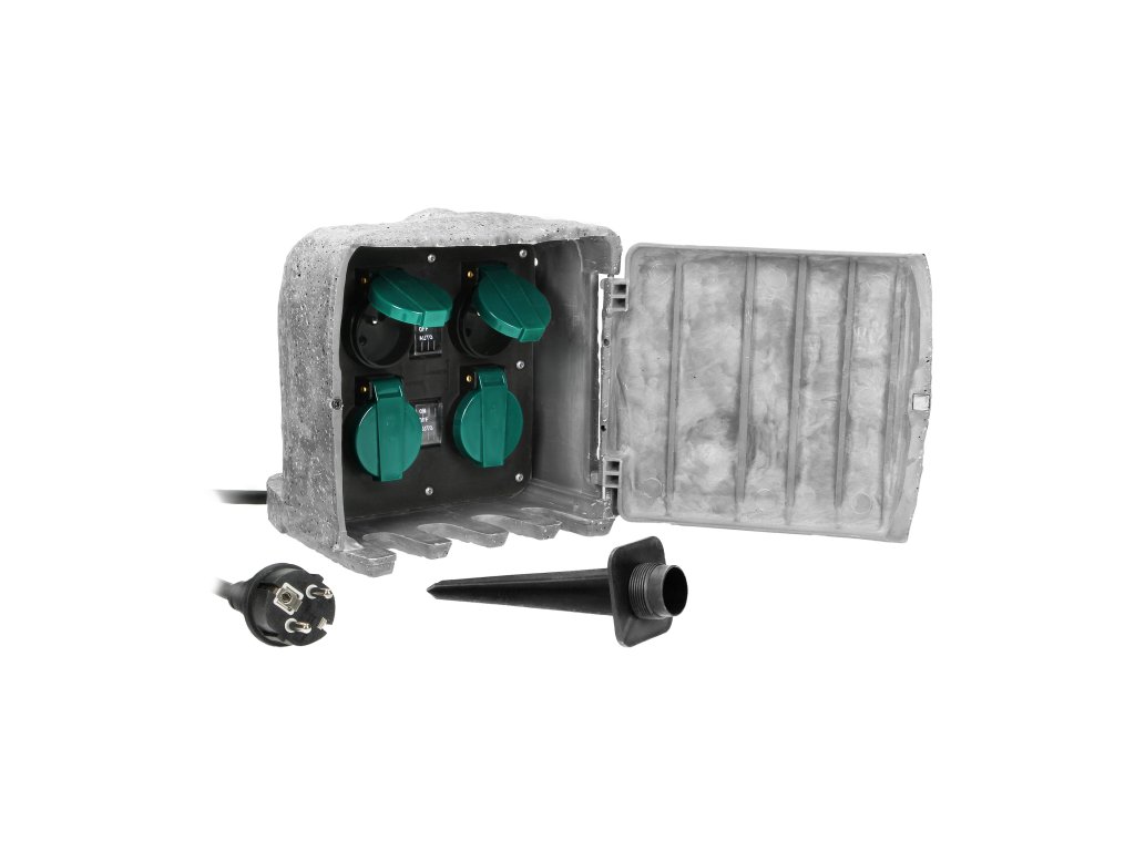 Vrtna utičnica KAMEN, 4 utičnice, 3m kabel