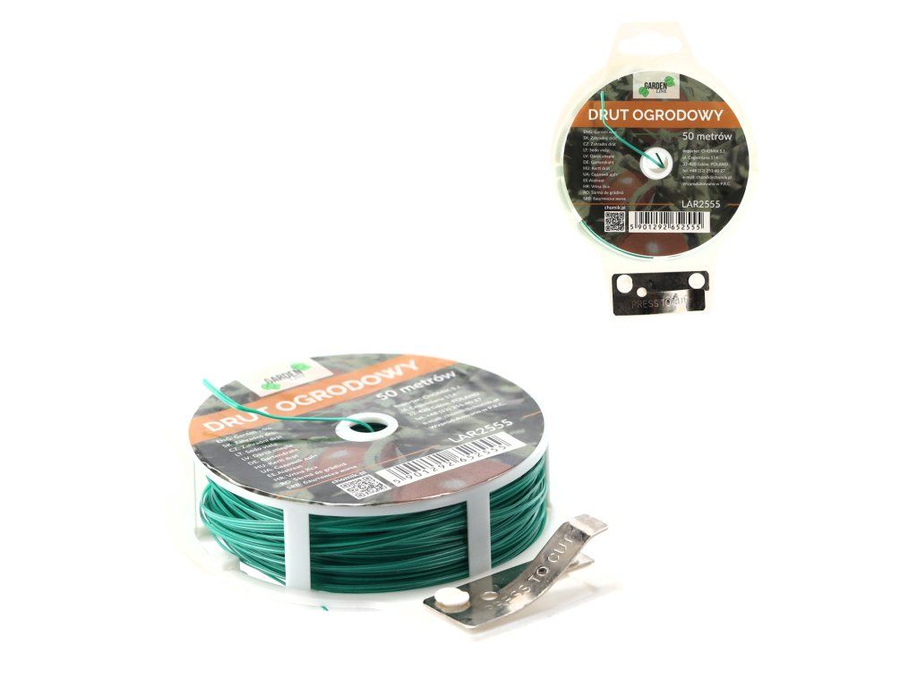 Vrtna žica, namijenjena za učvršćivanje i vezivanje biljaka, kako bi se osigurao njihov stabilan rast i zaštita od lomljenja. Žica je otporna, a njezina površina je prekrivena visokokvalitetnim PVC-om. Osim toga, kolut je opremljen funkcionalnim rezačem koji omogućuje lako i brzo rezanje, kako bi se dobio komad žice odgovarajuće duljine za nas.• Pakiranje: 50 m