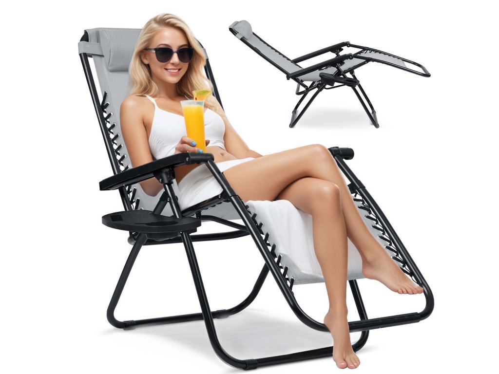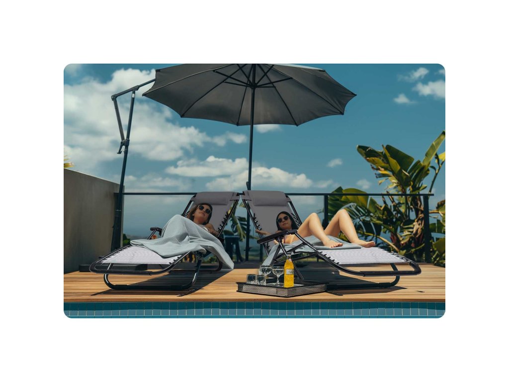 Ležaljka s gravitacijom s jastukom i mini stolićem je investicija u udobnost i komfor svakodnevnog opuštanja na otvorenom.