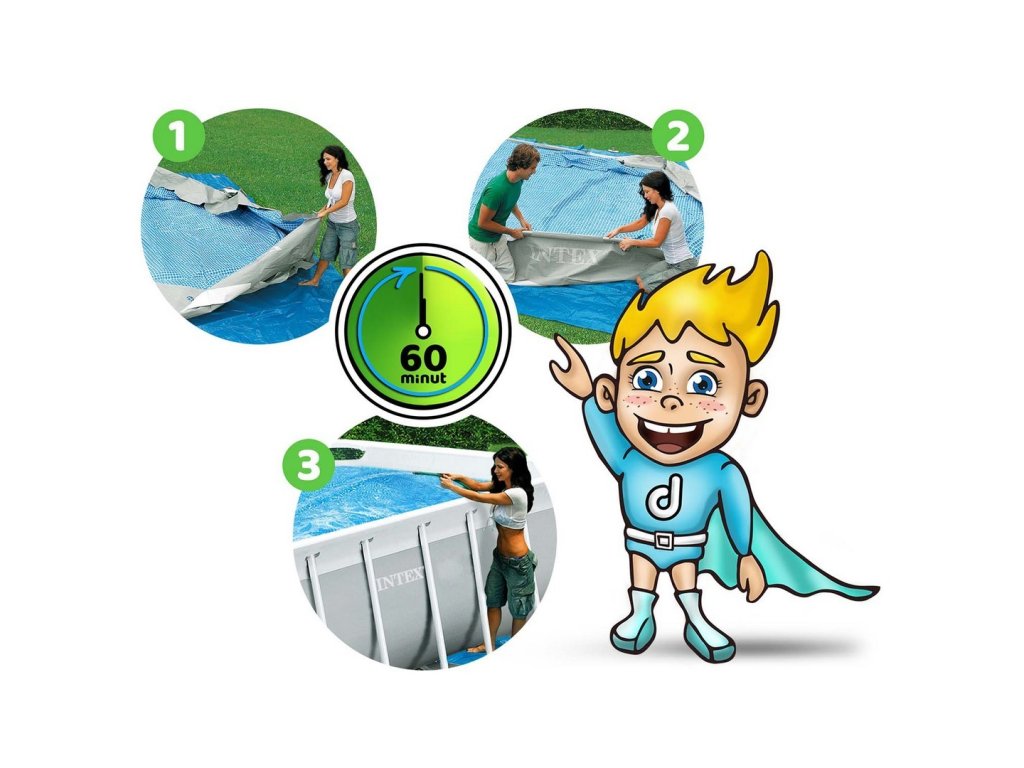 Pripremljen set s kompletnom opremom ne morate sami tražiti sve elemente. Kupnjom INTEX bazena s namjenskom opremom imate sigurnost da dobivate najvišu kvalitetu i da će sve odgovarati