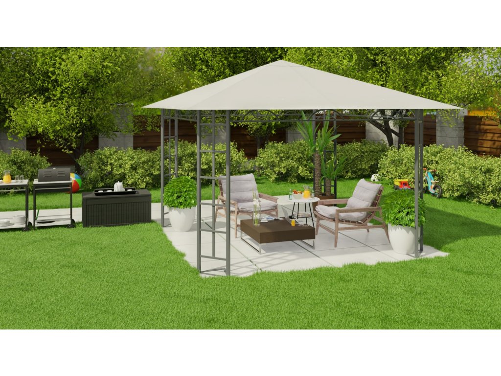 Vrtni paviljon Plonos izrađen je od izdržljivih čeličnih profila s praškastim premazom , koji osiguravaju maksimalnu izdržljivost i stabilnost cijele konstrukcije.