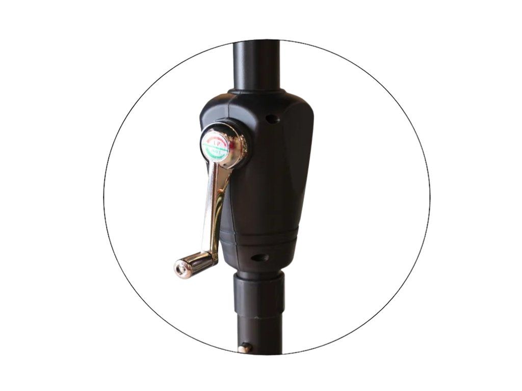 Suncobran je izrađen od visokokvalitetnog materijala. Platno je izrađeno od vodootpornog materijala. Ima ručku pomoću koje je sklapanje i rasklapanje suncobrana vrlo jednostavno. Naš proizvod je opremljen čvrstim okvirom izrađenim od praškasto lakirane čelika. U platnu se nalazi poseban ventilacijski otvor. Nadalje, suncobran sadrži vodootpornu navlaku izrađenu od crnog poliestera.