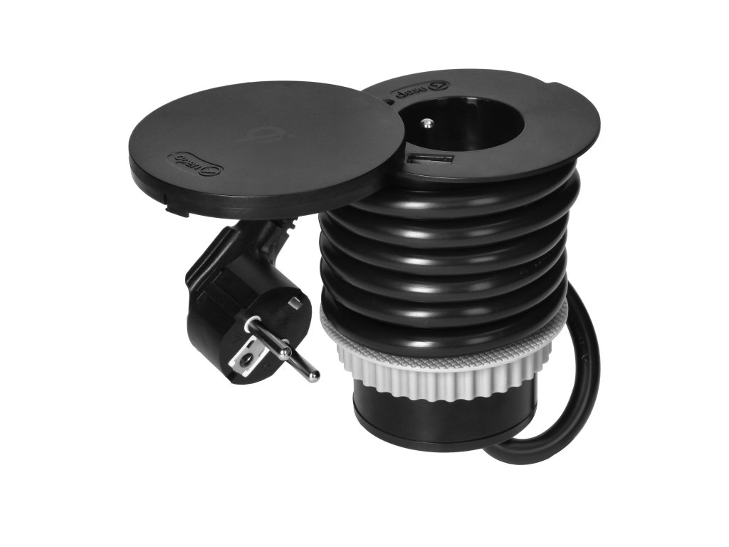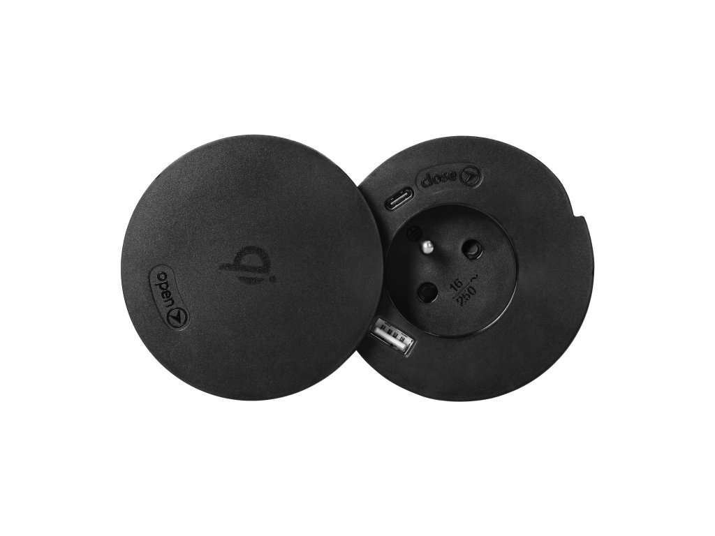Pohodlná a ľahko použiteľná Vstavaná zásuvka s otočným vekom. Na nabíjanie telefónu alebo iného mobilného zariadenia nie je potrebné otvárať zásuvku - kryt slúži aj ako indukčná nabíjačka. Po otvorení môžeme okrem dvoch zariadení nabíjaných cez USB kábel pripojiť aj jedno zariadenie napájané 230V. Ideálne na domáci stôl alebo na vaše pracovisko.