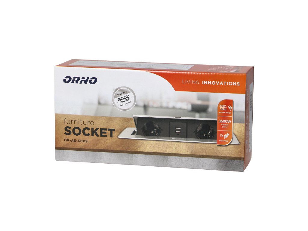 Súprava dvoch sieťových zásuviek s uzemnením Schuko a prúdovou ochranou v kombinácii s dvoma nabíjačkami USB. Súprava je zabudovaná do puzdra, ktoré možno integrovať do stolov, pracovných dosiek a stolov. Možno ju namontovať vertikálne aj horizontálne, čím sa zabezpečí pohodlný prístup k elektrickým zásuvkám. Vďaka plochej hrane (len 2 mm) kryt so zásuvkami dokonale zapadne do povrchu napr. stola a neprekáža pri jeho čistení. Odporúčaný kábel OWY 3 × 1,5 mm² (nie je súčasťou dodávky). Farba - grafitová.Všeobecné informácie: