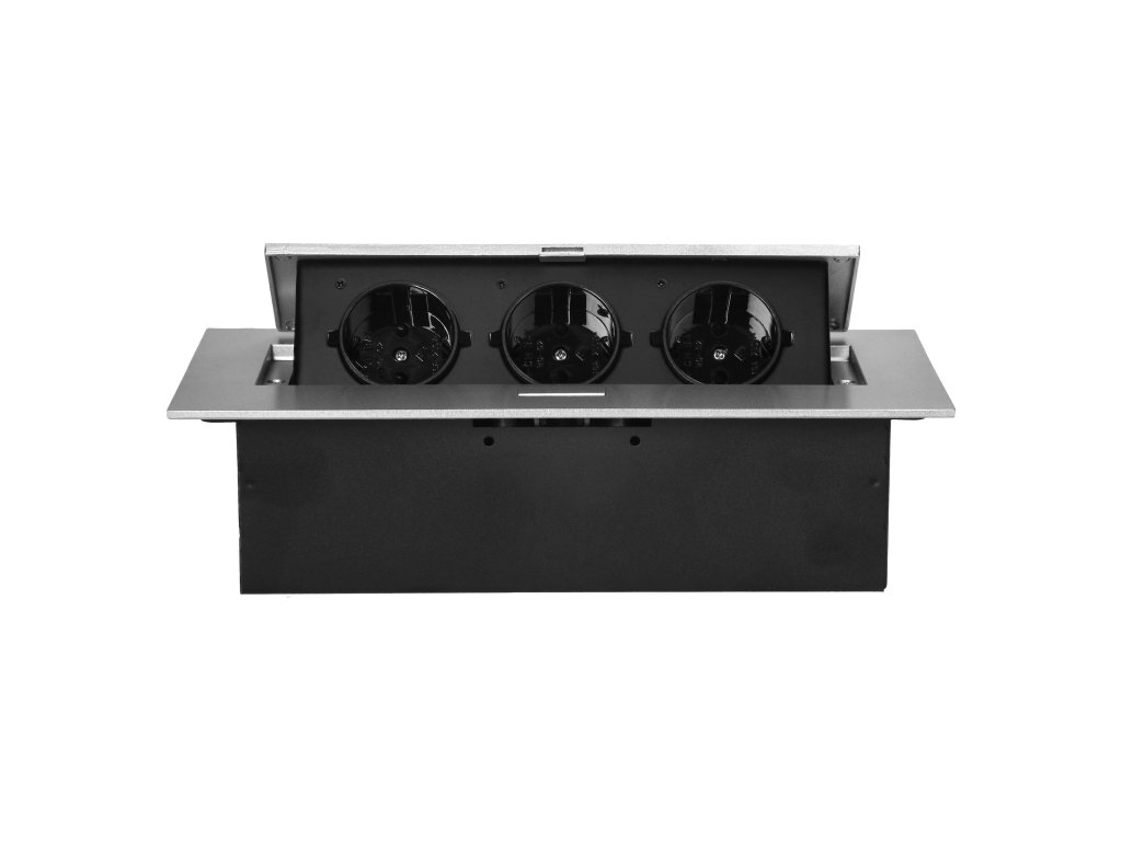Výklopná nábytková zásuvka s elegantnou plochou frézovanou hranou pridáva estetický dotyk do vášho nábytku, a zároveň slúži svojej praktickej funkcii. Jej frézovaná hrana umožňuje skvelú inštaláciu kazety, pričom všetky rezne línie a montážne otvory zostanú pekne zakryté.Nový model tejto výklopnej zásuvky sa vyznačuje celým spodným puzdrom, ktoré uľahčuje inštaláciu a zvyšuje bezpečnosť používania. Vďaka dodatočne krytej káblovej vývodke s gumovým tesnením je zabezpečená vysoká ochrana pred nežiaducim vniknutím a možným poškodením. Zásuvka je tiež vybavená bezpečnostnými uzávermi a umožňuje zatvorenie výklopného krytu, čím skryje nepoužívané zariadenia rovno pod pracovnou doskou.