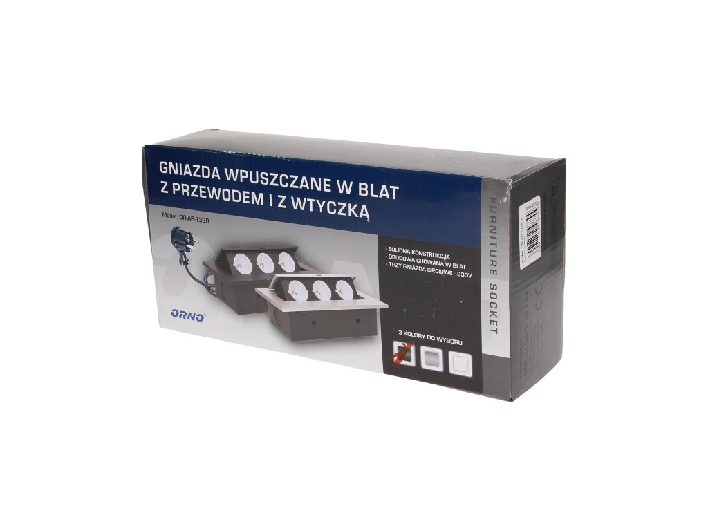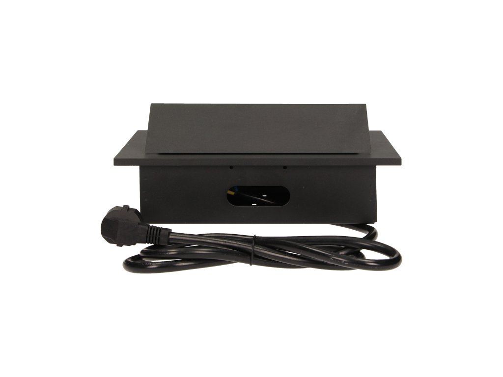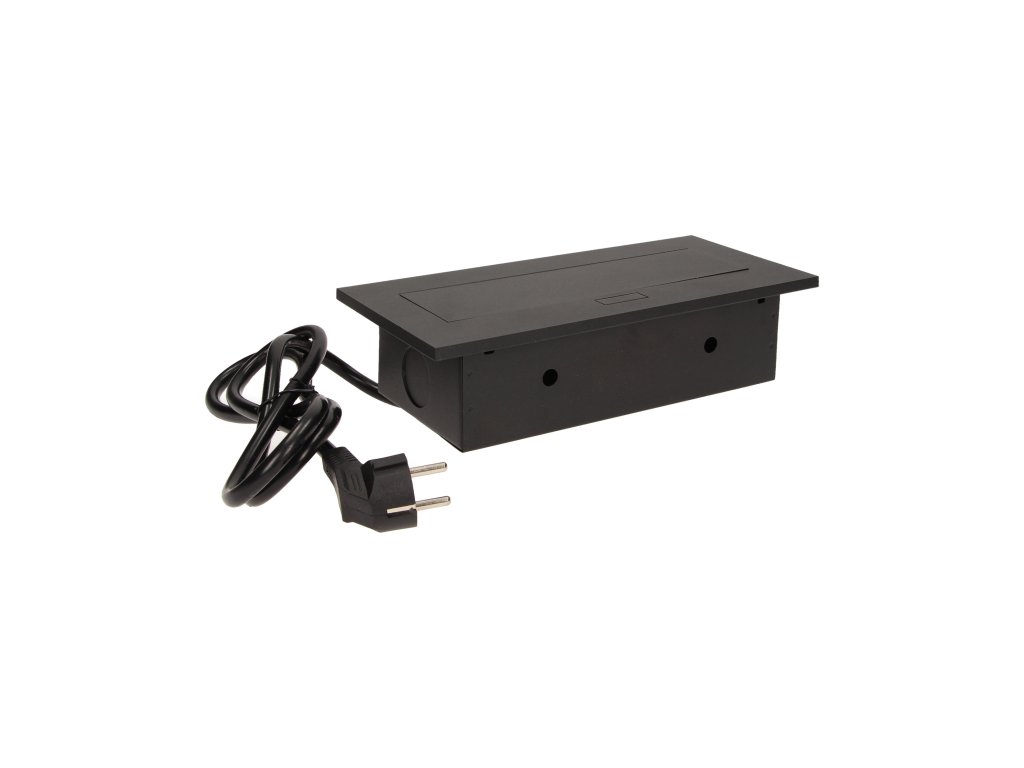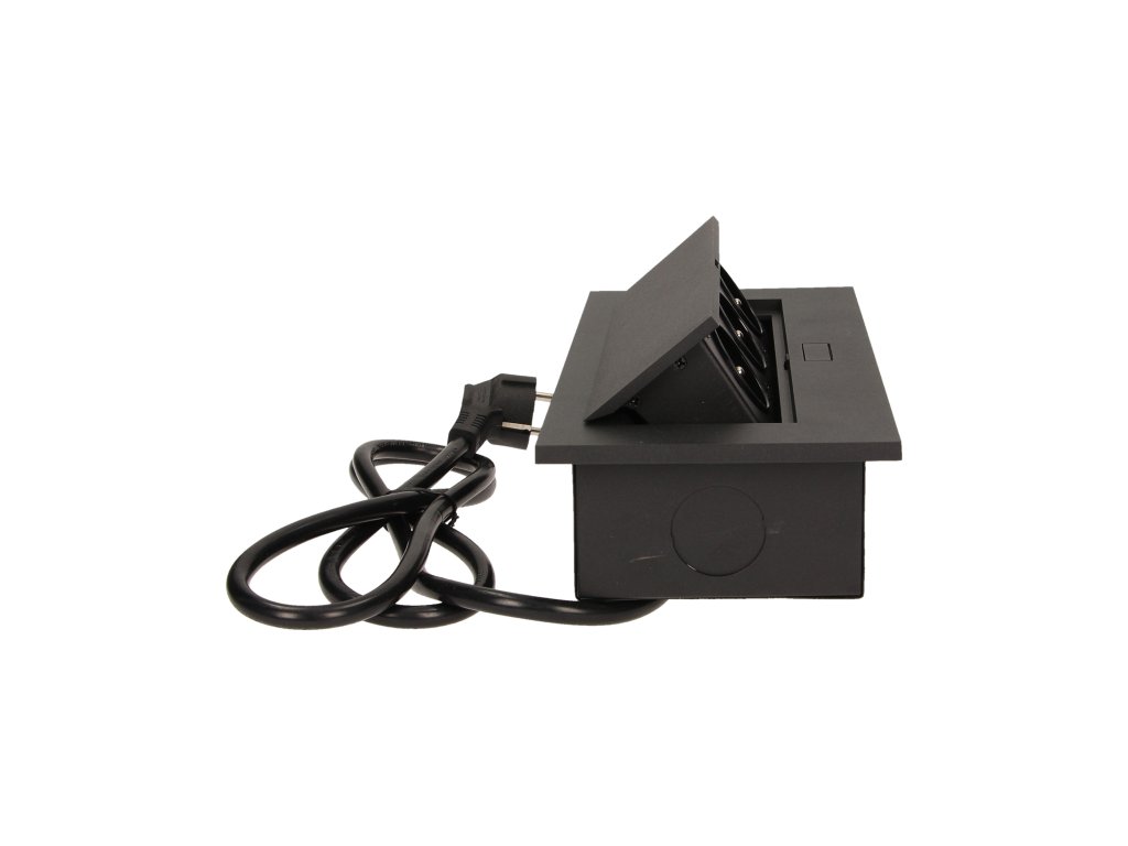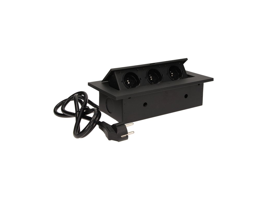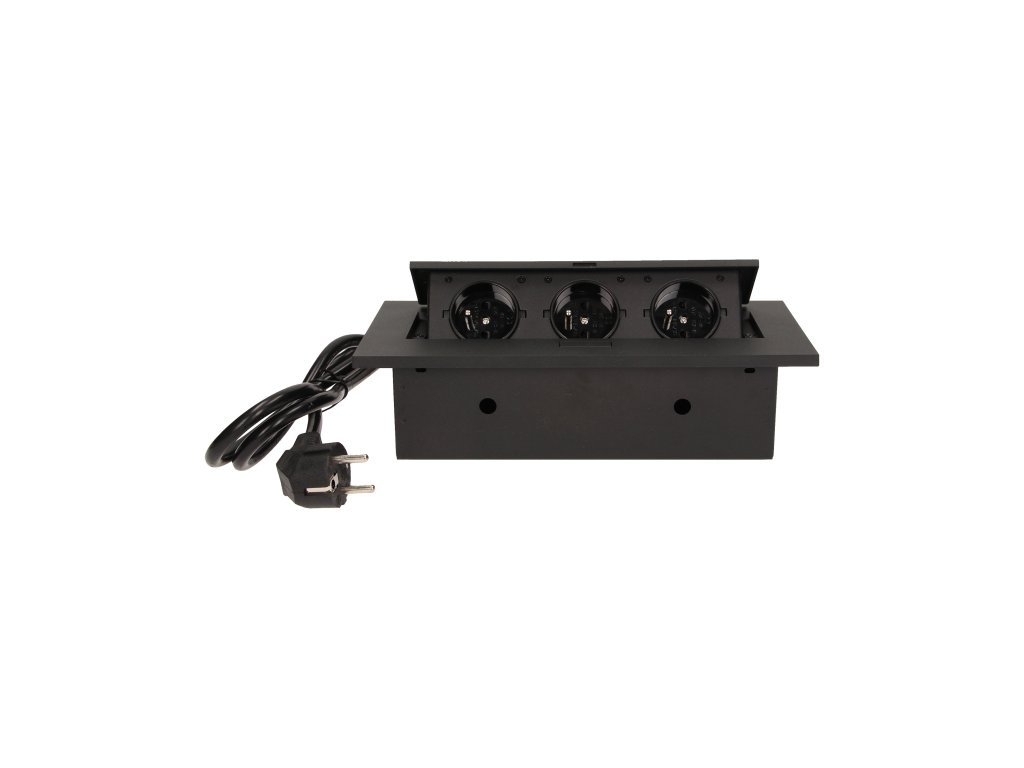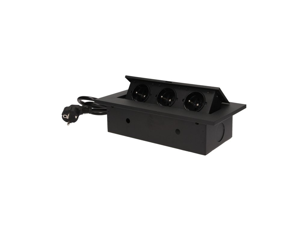 Sada troch elektrických zásuviek 2P+Z vo výsuvnom hornom kryte. Určené na vnútornú inštaláciu do stolov, stolových dosiek a stolíkov vo vertikálnej aj horizontálnej polohe, pričom poskytujú prístup k elektrickým zásuvkám.Všeobecné informácie: