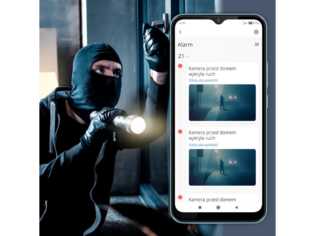 Brzo reagirajte na bilo koju prijetnju! Zahvaljujući detektoru pokreta, vaš telefon će dobiti obavijest kada se na dvorištu pojavi uljez. Nadzorni sustav Kruger&Matz ima dodatnu funkciju koja omogućuje automatsko snimanje pri otkrivanju pokreta.