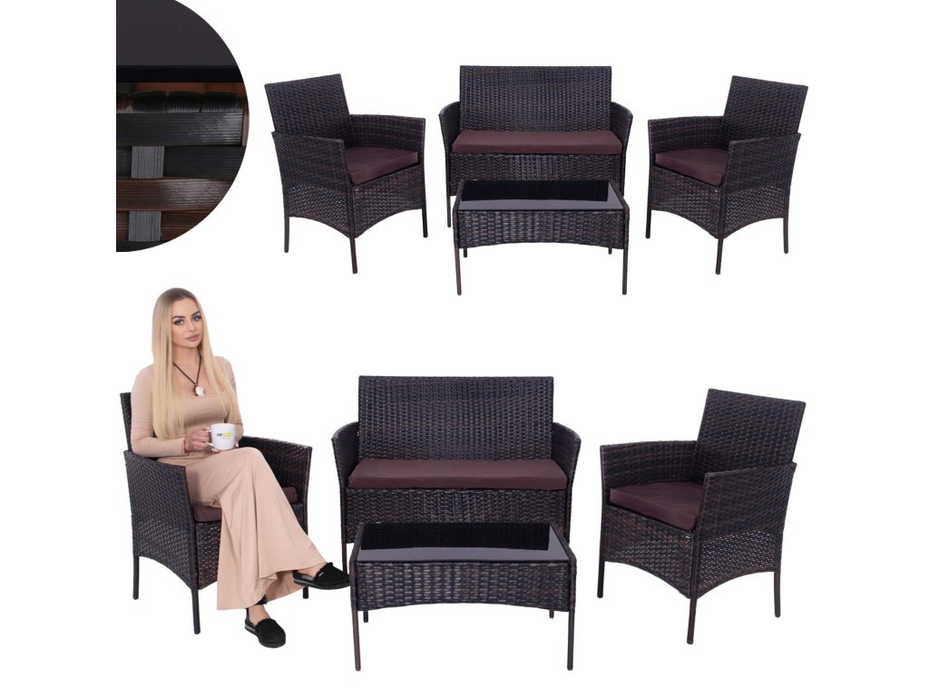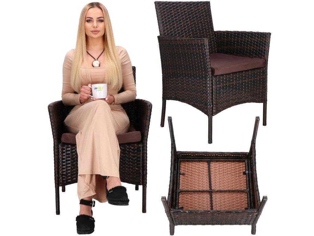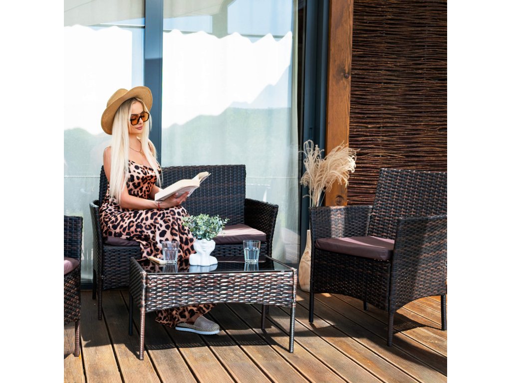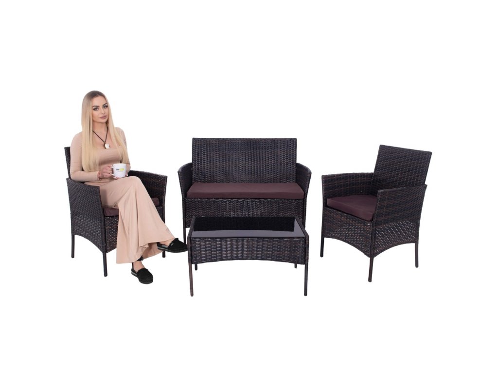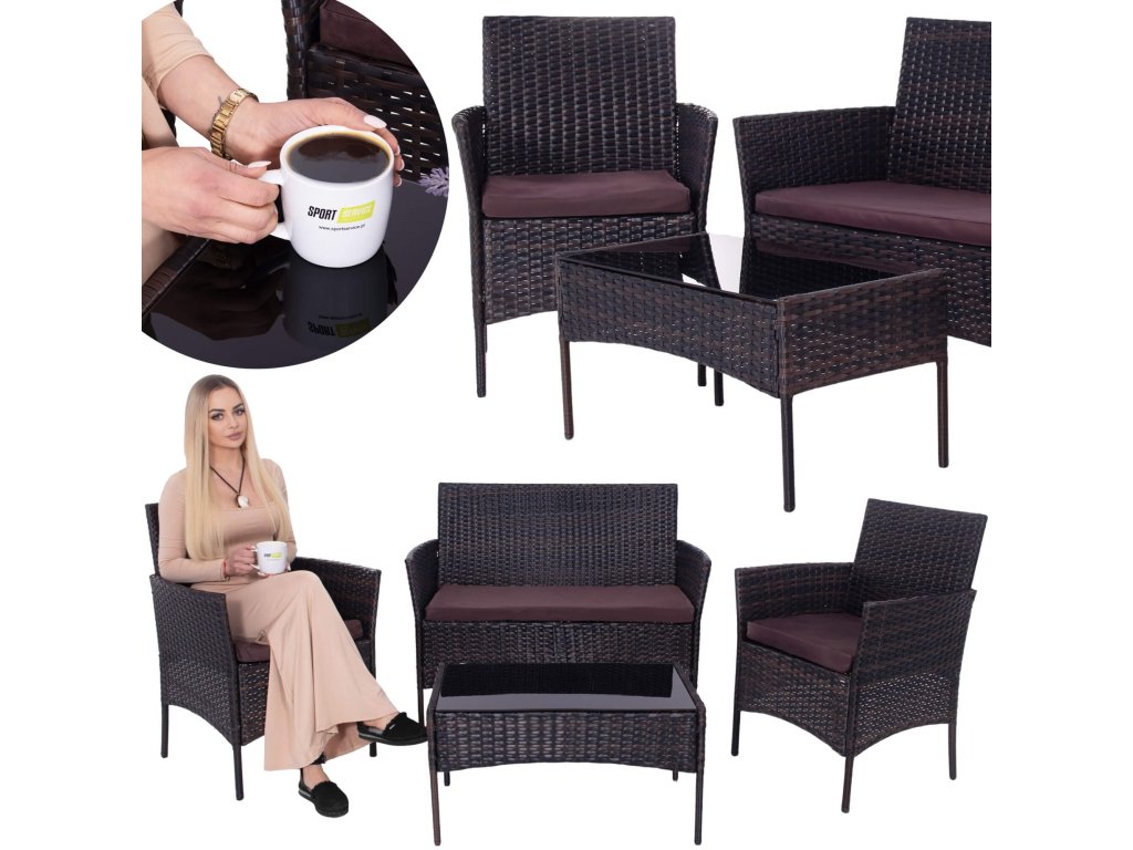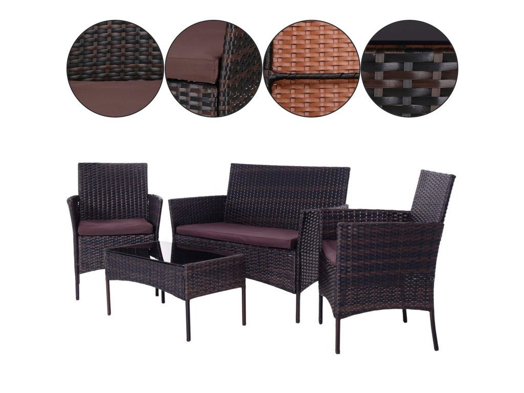 - Materiál: technorattan, tvrdené sklo, polyester/PP pena