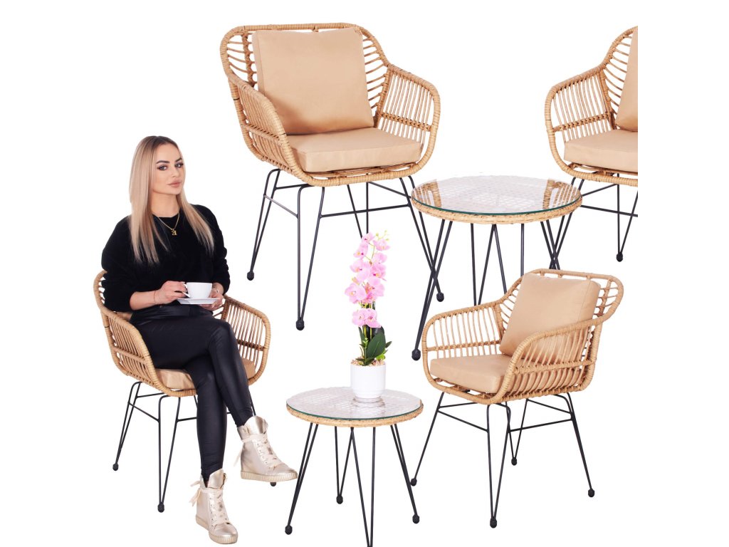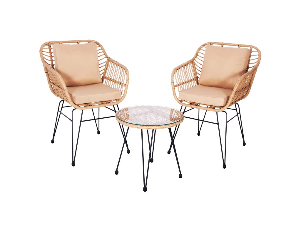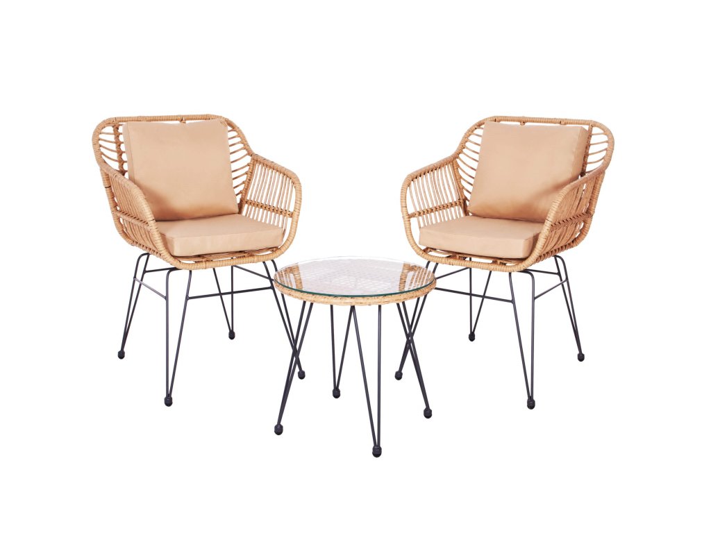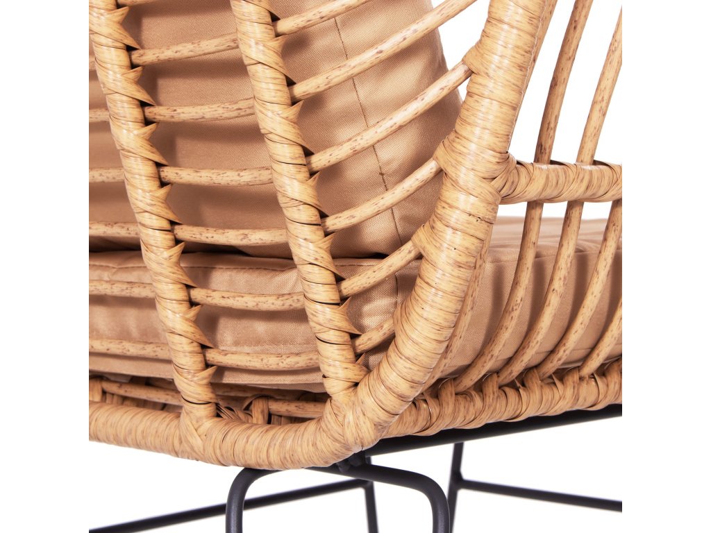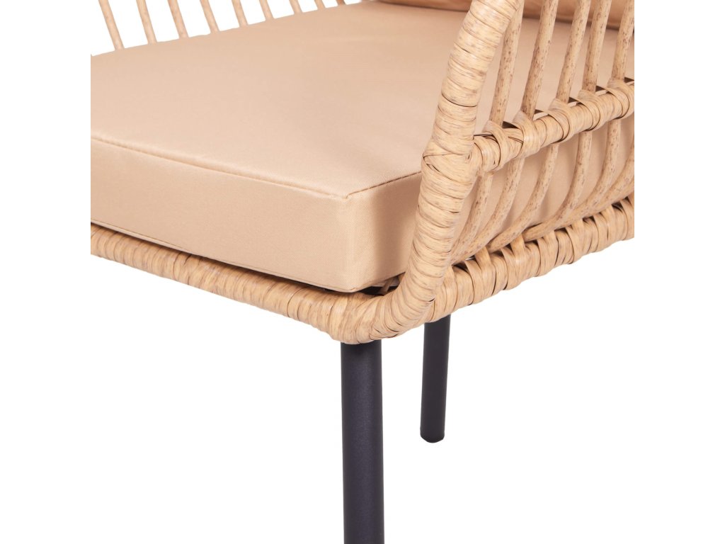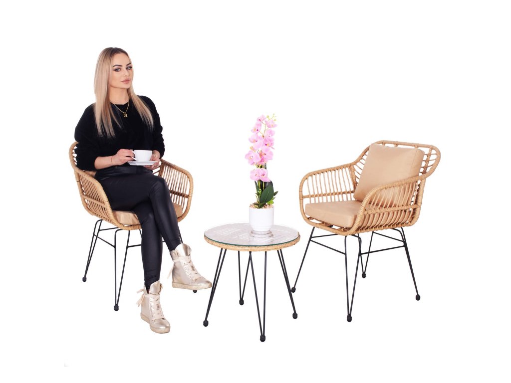 - Materiál: technorattan, tvrdené sklo, kov, polyester/PP pena