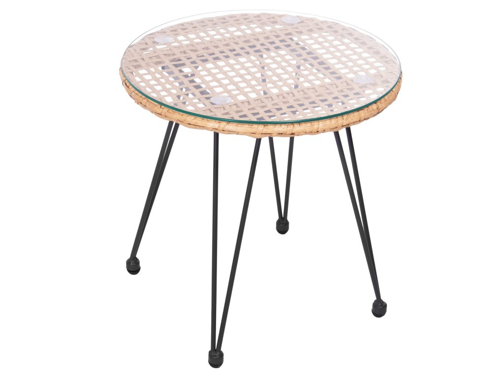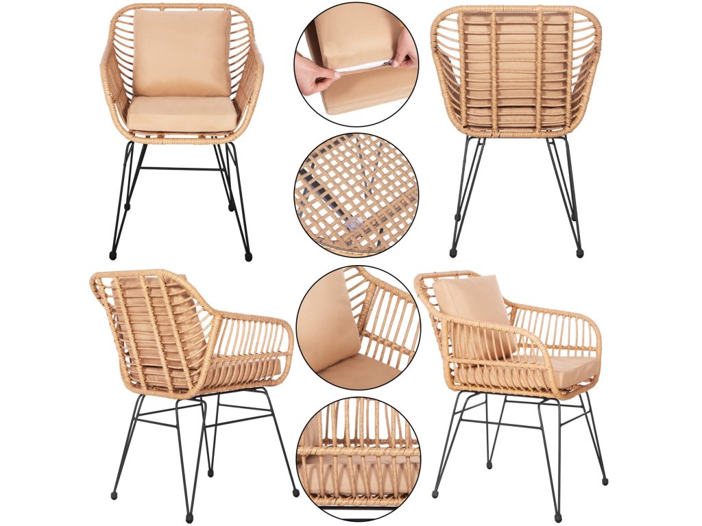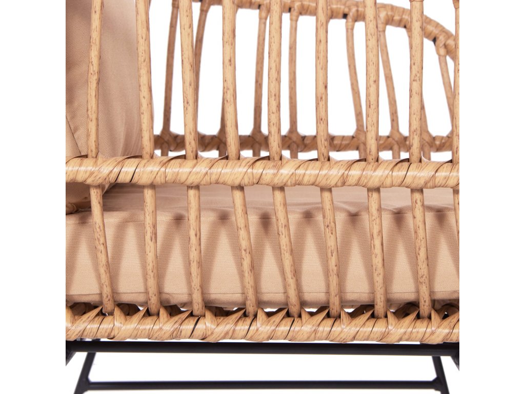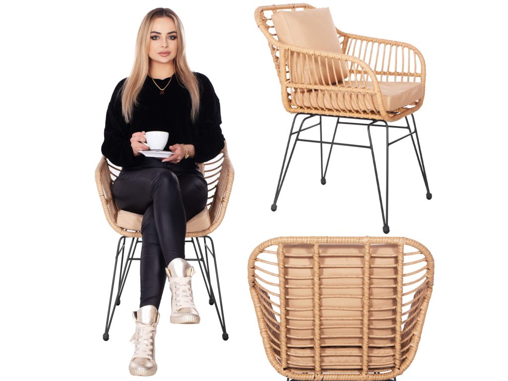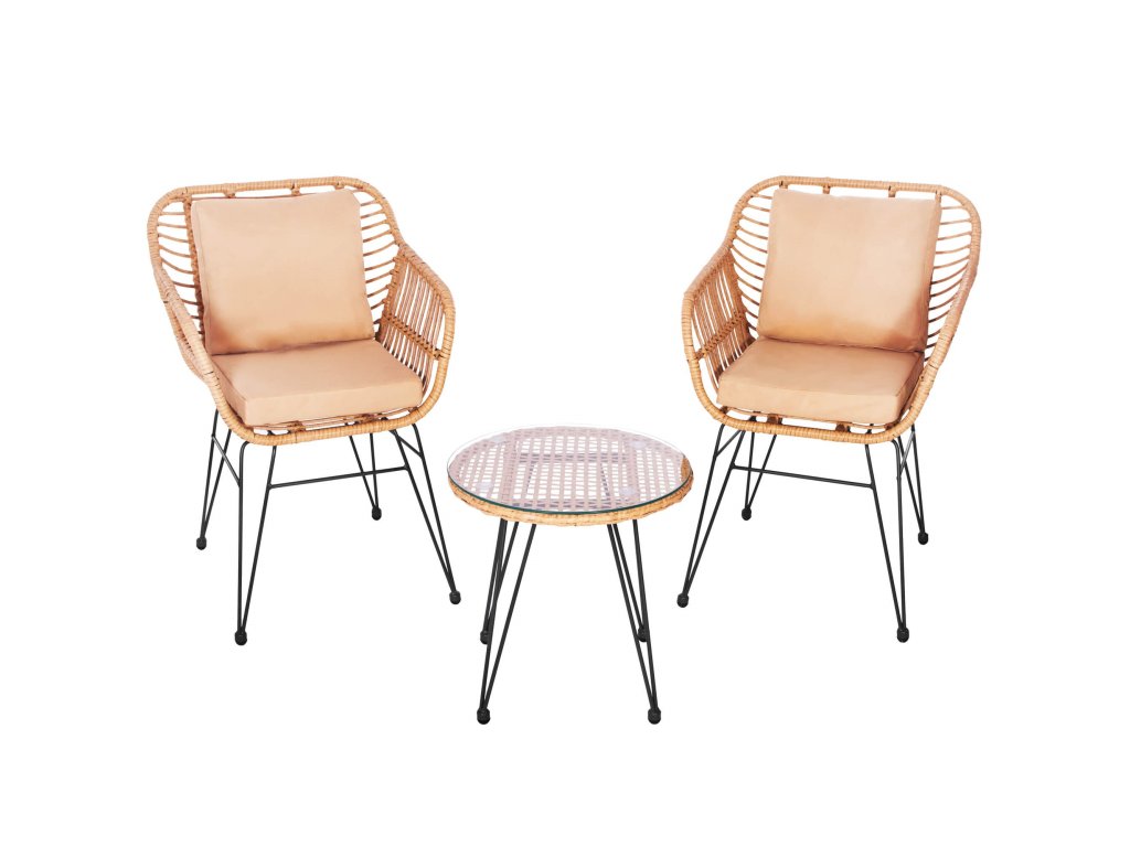 - Materiál: technorattan, tvrdené sklo, kov, polyester/PP pena