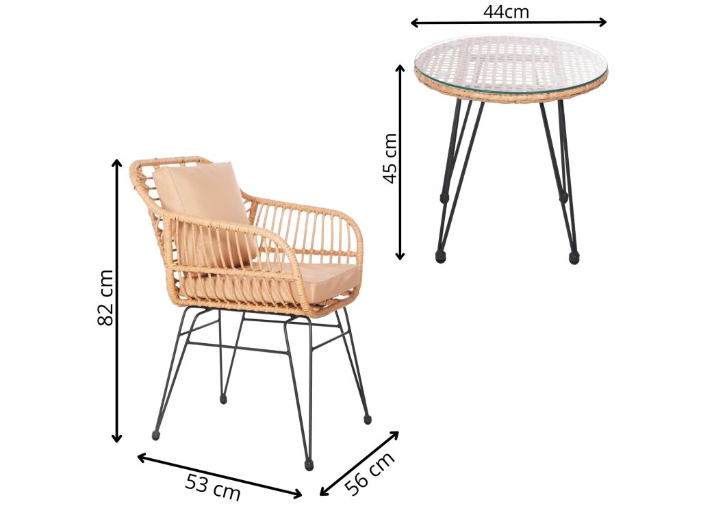 - Vrátane prvkov: 2x stolička, okrúhly stôl so sklenenou doskou