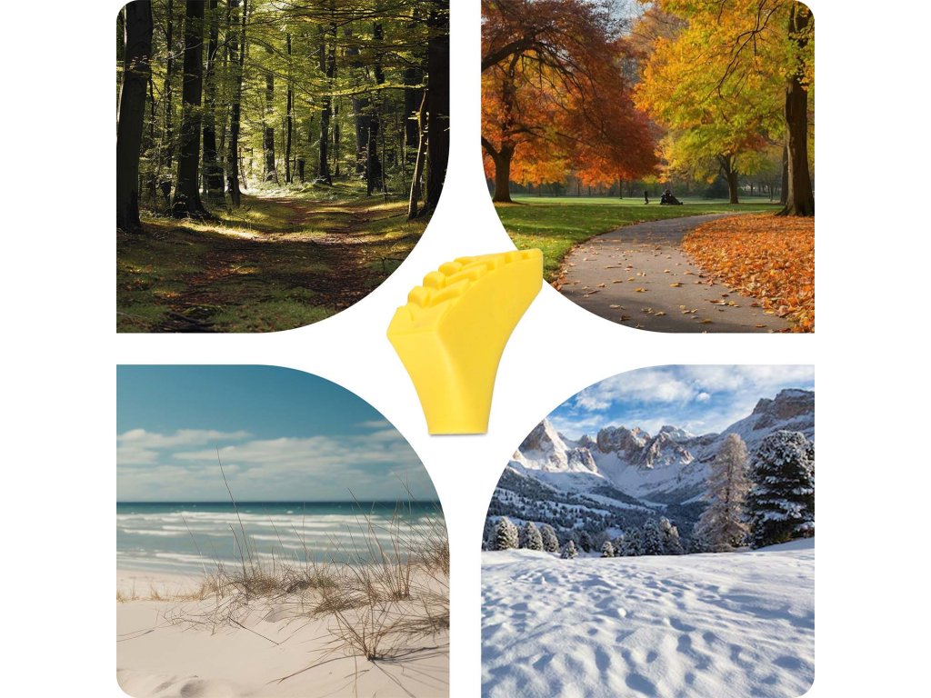Komplet nastavaka prilagođenih za različite površine – idealno na asfalt, šumu, plažu i snijeg.