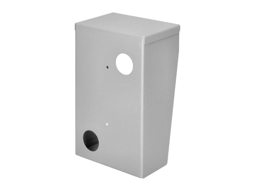 Zaštita vanjske jediniceprikladna za površinsku montažu, prikladna za vanjske panele iz serije FOSSA: OR-DOM-RL-901; OR-DOM-RL-902, OR-DOM-RL-903. Štiti od nepovoljnih vremenskih uvjeta. Proizvod je izrađen od čeličnog lima s praškastim premazom u sivoj boji.