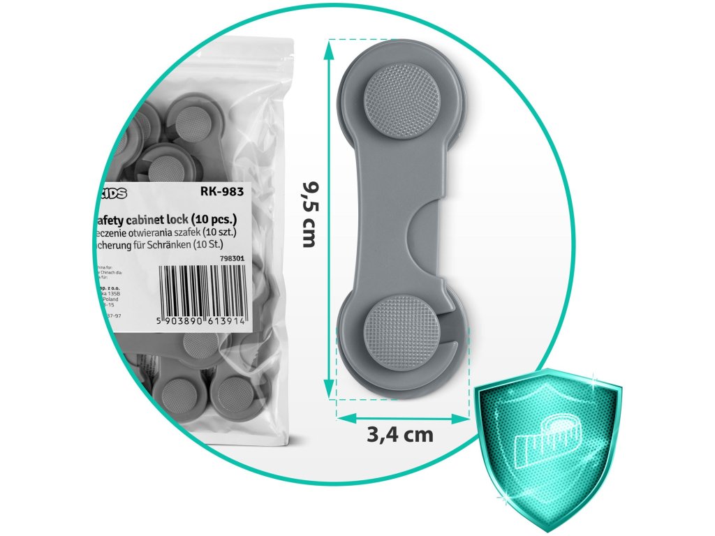 Praktično, malo i estetsko sigurnosno sredstvo, koje će spriječiti dijete da iznenada otvori ormarić ili ladicu .