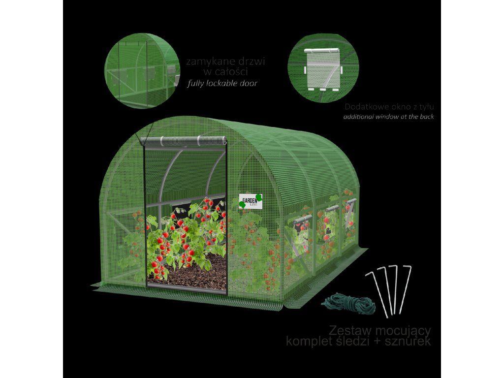 - Folia: Zelena polietilenska folija s umetnutom PP mrežicom (jača konstrukciju i štiti od pucanja)