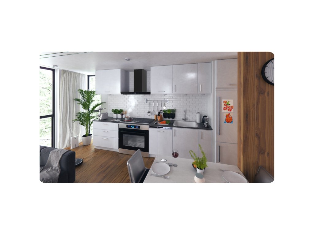 - uklanja masne pare (tako da se mast ne nakuplja na pločama, prednjicama ormarića i spojnicama bez stvaranja ljepljivog sloja prljavštine)