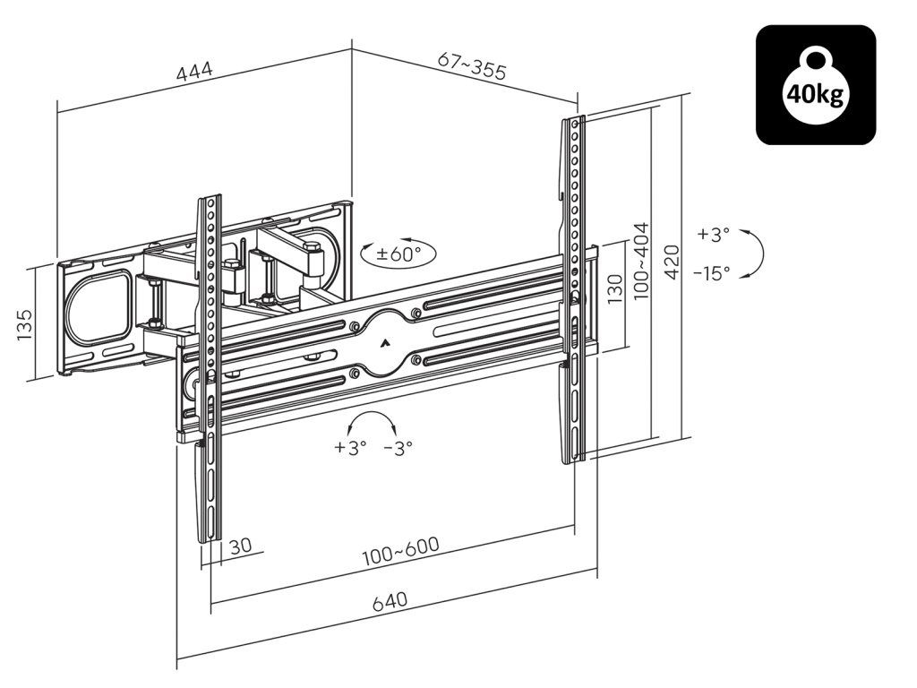 - Standard VESA od 100x100 mm do 600x400mm