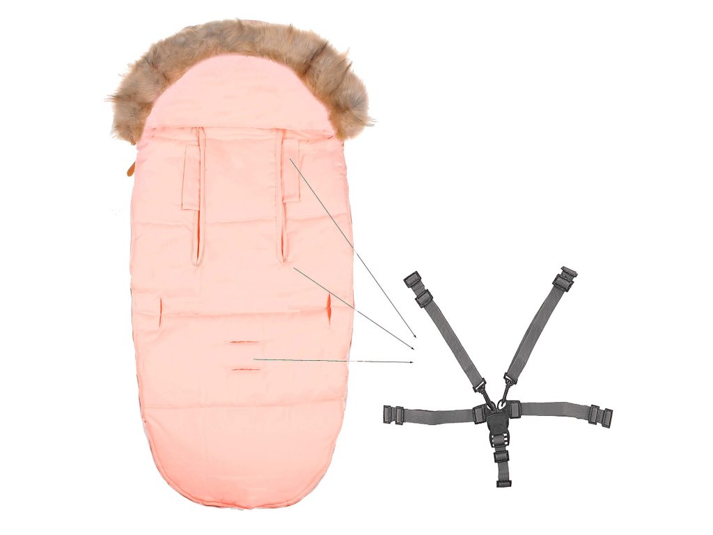 Na stražnjoj strani: 2 velika proreza/otvori zatvoreni s 2 čičak trake + 4 dodatna proreza – za sjedište/montažne trake – raspoređeni tako da odgovaraju različitim trakama