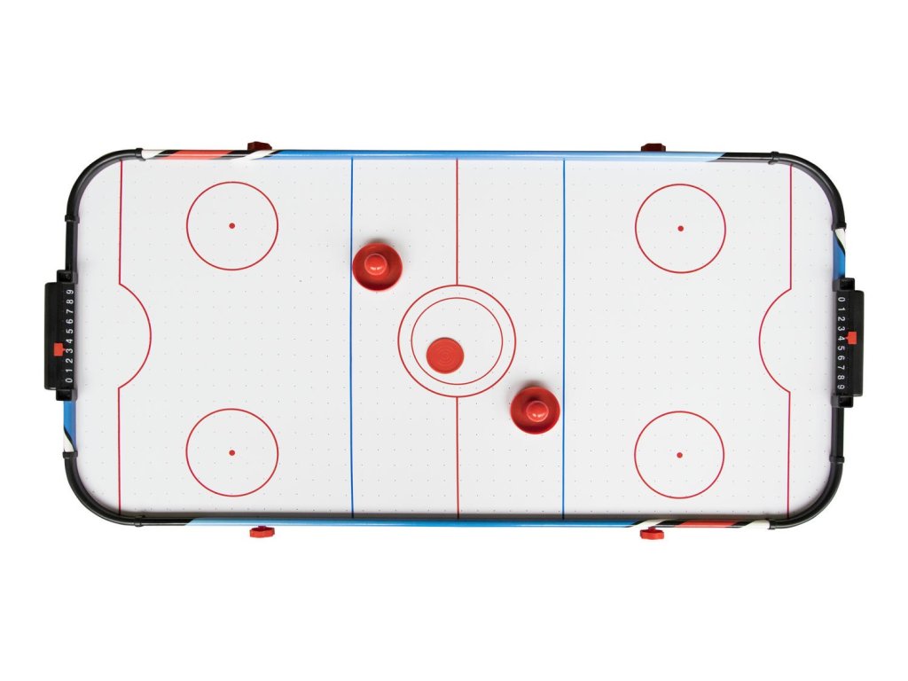Zračni hokej je igra vrlo slična klasičnom zračnom hokeju. Igrači stoje s obje strane stola i kretanjem uz pomoć posebnih palica pokušavaju ubaciti pak protivnika u gol te na ugrađenim brojilima evidentirati osvojene bodove. Pravila su zaista jednostavna Nogomet je isto „samo“ to što je lopta okrugla i postoje dva gola. Tako je i sa zračnim hokejom – jednostavna pravila i zabavnost igre su na vrhunskoj razini.