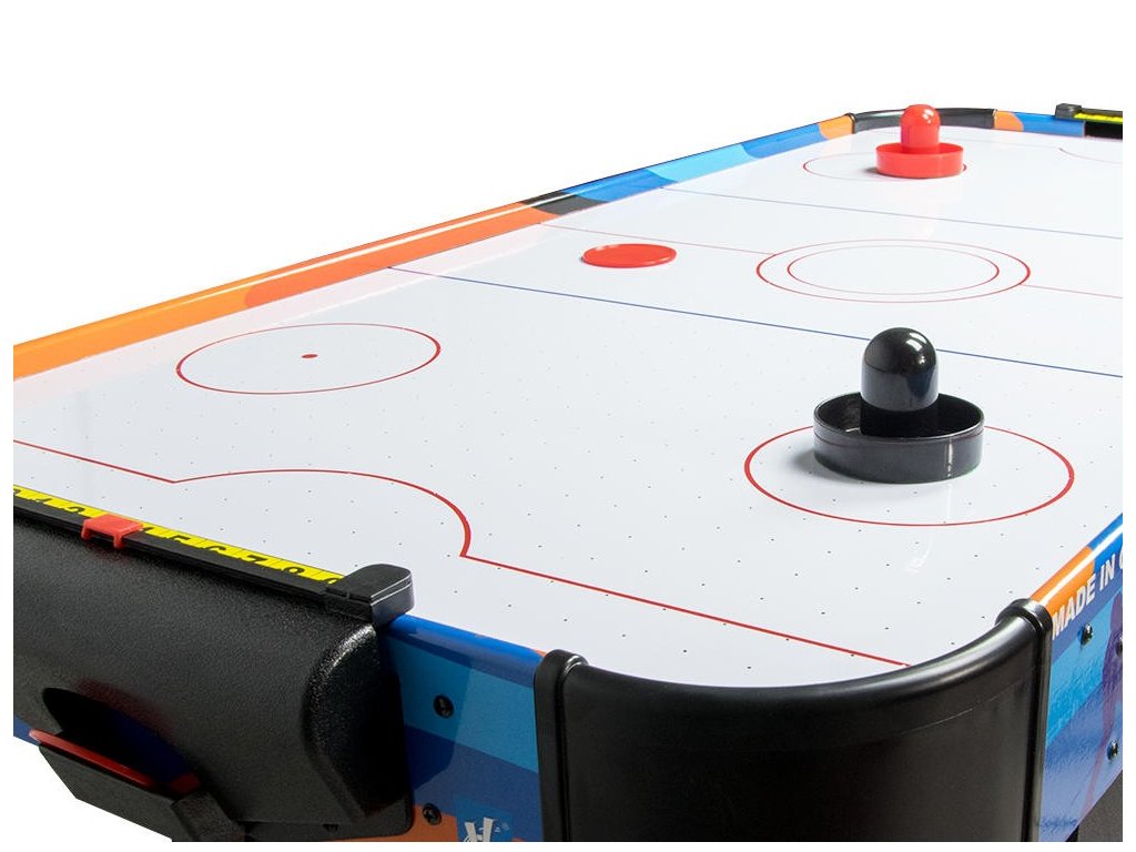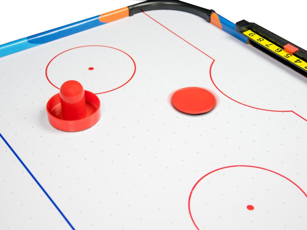 Svijet hokejskih borbi doslovno imate na dohvat ruke. Stol Air Hockey sastavit ćete u tren oka, jer je čvrsta stabilna konstrukcija jednostavna i intuitivna istovremeno. Dizajniran je kako bi igračima osigurao udobnost tijekom mnogih dugih igara. Čemu Air Hockey duguje takvu dinamiku Stol ima ugrađen mehanizam Air Flow, odnosno specijalni ventilator koji puše zrak kroz perforiranu površinu i lagano podiže pak. Air Flow pruža efekt sličan klizanju paka po ledenoj površini.